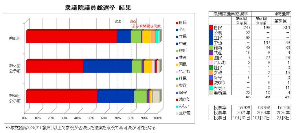 2026年2月9日 第51回衆議院議員総選挙開票結果