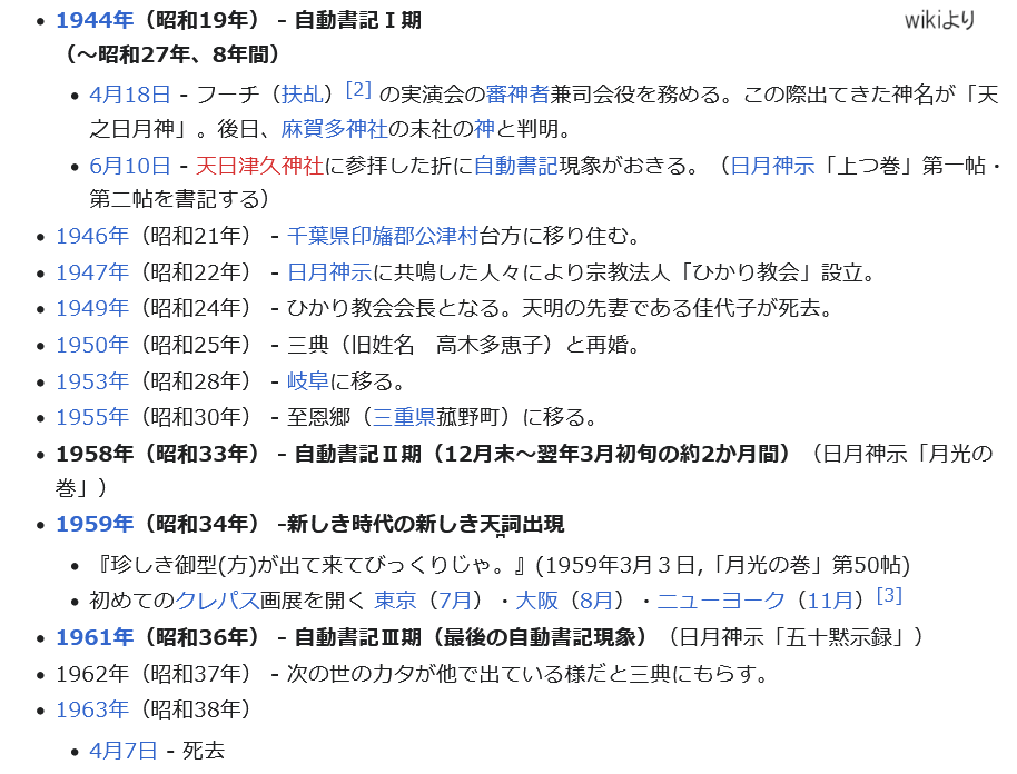 もっと前、最初に知ったのは10数年前に私にとっての日月神示が降りた時でした。当時net検索で[日月神示][岡本天明]を調べた時に晩年岡本天明氏が[カタが他に出ている]と言った、それが私が生まれた頃だと認識したと思います。