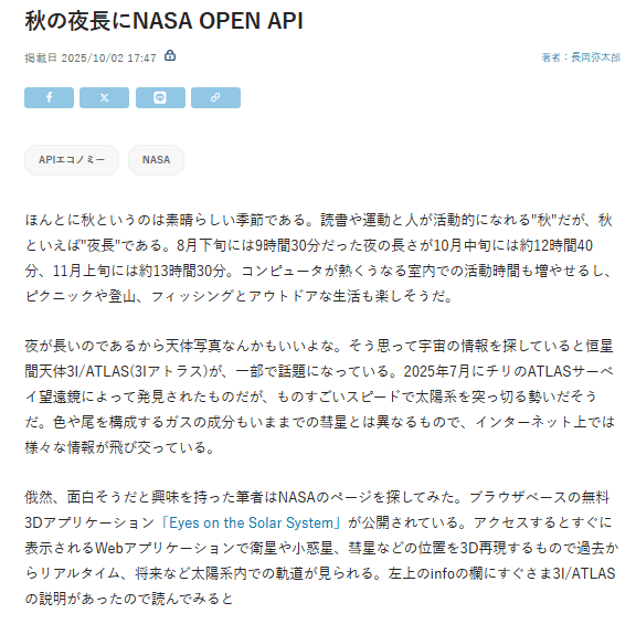10月2日 秋の夜長にNASA OPEN API | TECH+(テックプラス)