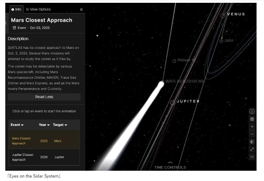 恒星間天体、3I/ATLASは10月3日に火星に接近と言われています