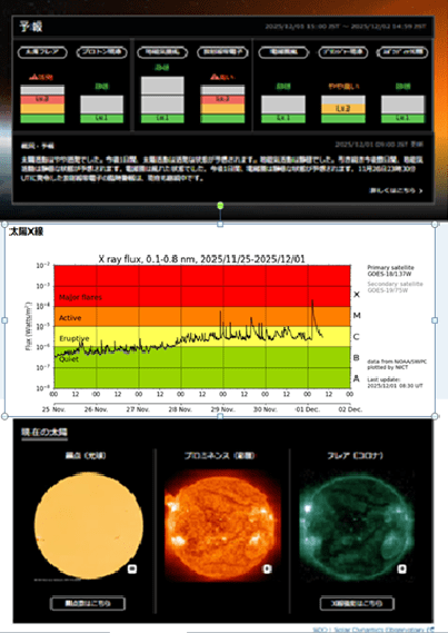 12月に入り、今年もあと1ヵ月になりました。先日も太陽フレアで投稿しました、引き続き太陽フレアが活発化しています。それによるトラブルに注意が必要です。
