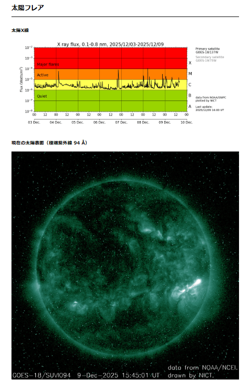 宇宙天気予報 本日の太陽フレア https://swc.nict.go.jp