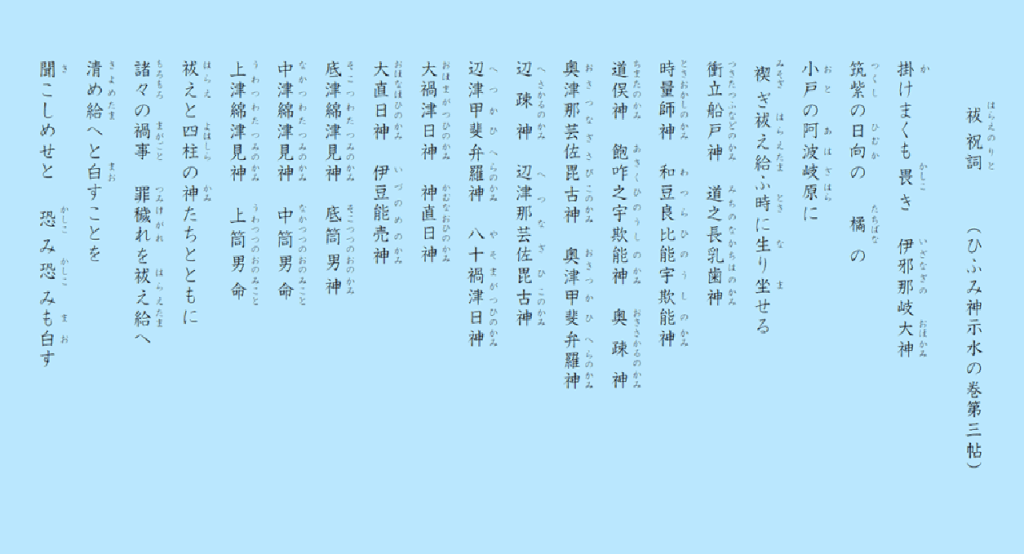 ひふみ神示の書籍には大祓詞はそのままありませんが非常に近いもの紫金の巻に掲載されています。今の時期を考えると今年の年末はそちらではなく、祓え祝詞水の巻のほうが良いと思いました。