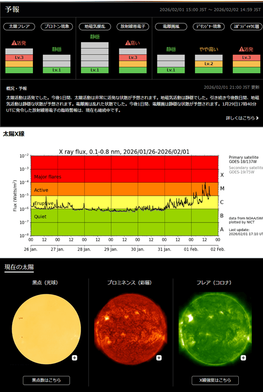 宙天気予報 本日の太陽フレア https://swc.nict.go.jp