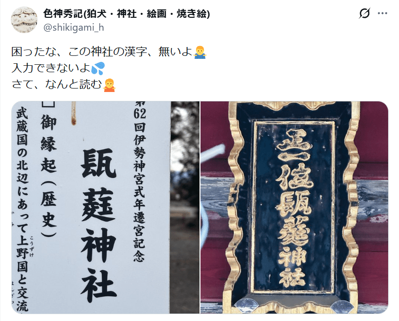 スマホの漢字入力、勉強になりました、ありがとうございました 𤭖の神様ありがとうございます