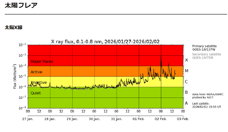 宇宙天気予報 本日の太陽フレア https://swc.nict.go.jp