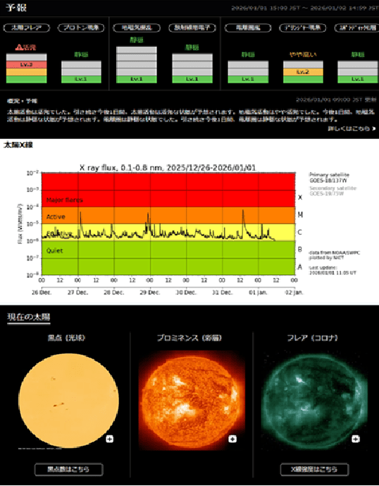 宇宙天気予報 本日の太陽フレア https://swc.nict.go.jp 2026年1月1日